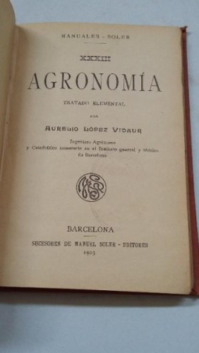 AGRONOMIA LOPEZ VIDAUR. MANUALES SOLER. XXXIII. TDK451