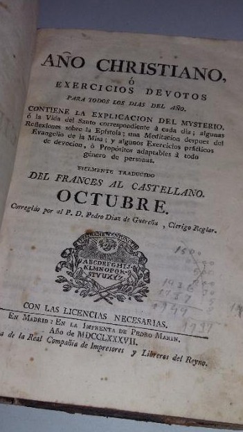 AÑO CHRISTIANO O EXERCICIOS DEVOTOS PARA TODOS LOS DIAS DEL AÑO. 1787 PEDRO MARIN MADRID. TDK462