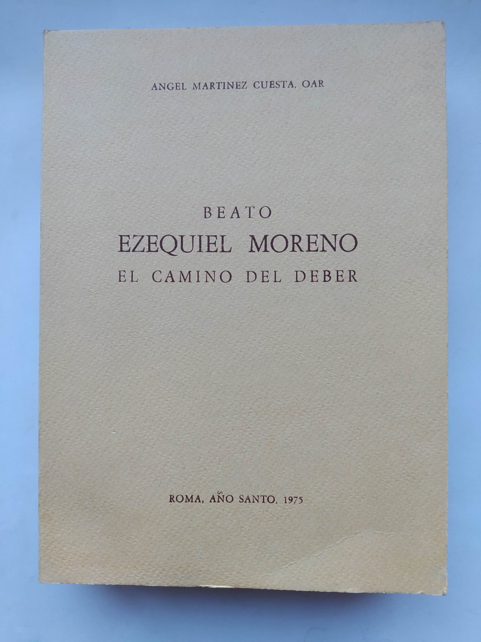 BEATO EZEQUIEL MORENO: EL CAMINO DEL DEBER. Roma. Año Santo 1975. de Martínez Cuesta, Ángel, OAR. Roma. 1975. Scuola Tip. Miss. Dominicana. 21 x 15.