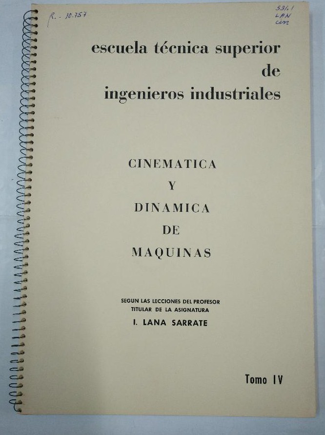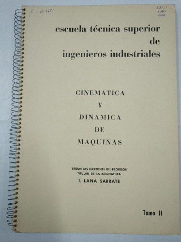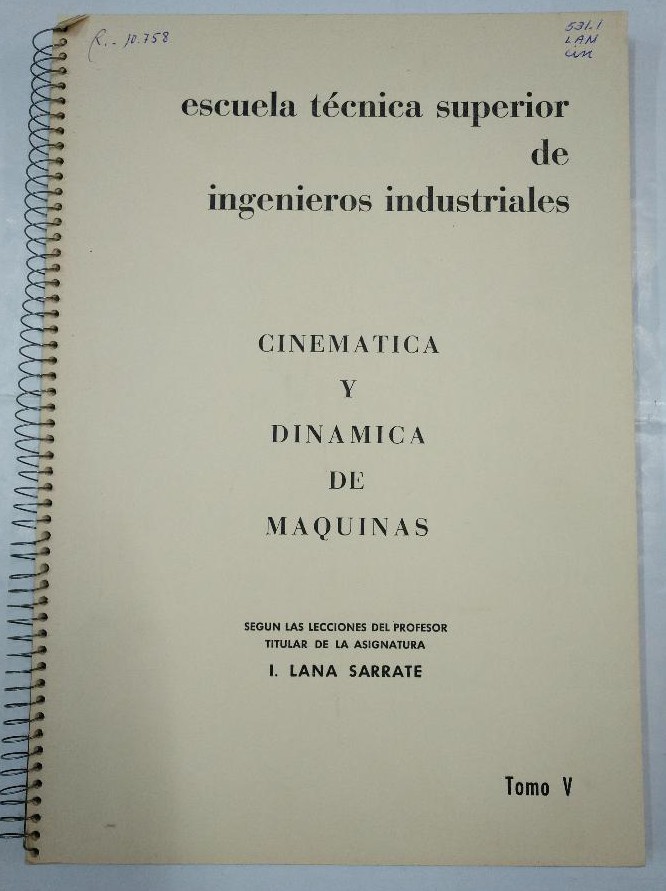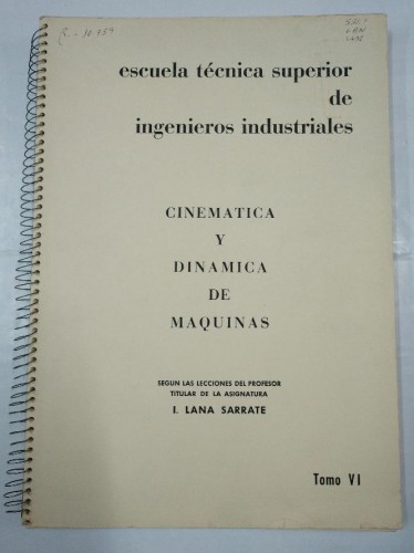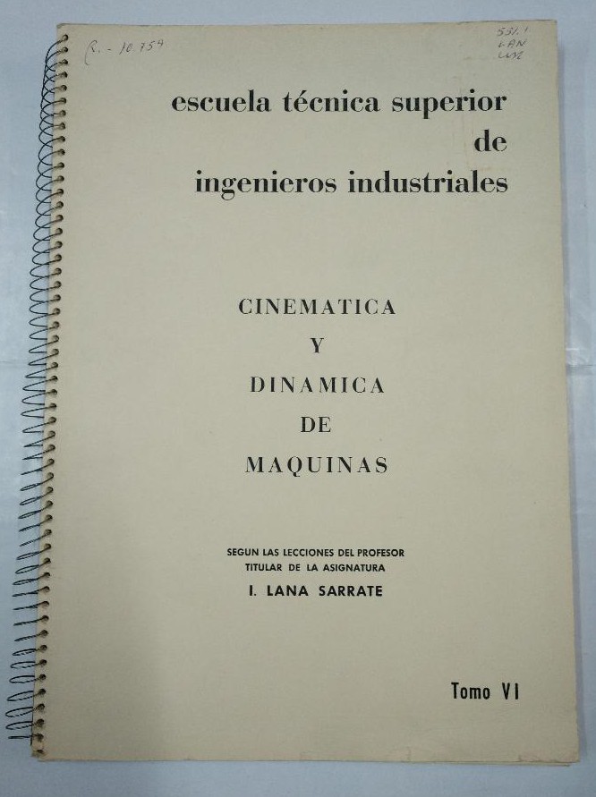 CINEMATICA Y DINAMICA DE MAQUINAS. LANA SARRATE. LOTE DE 6 LIBROS ENCUADERNADOS. TOMOS I - VI. TDK97