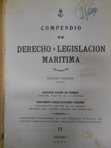 COMPENDIO DE DERECHO Y LEGISLACION MARITIMA. AGUSTIN VIGIER DE TORRES. GUILLERMO PEREZ OLIVARES FUENTES.