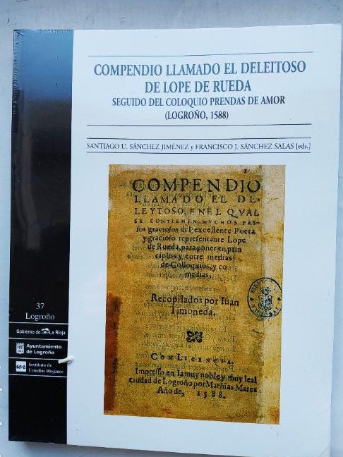 COMPENDIO LLAMADO EL DELEITOSO DE LOPE DE RUEDA. SEGUIDO DEL COLOQUIO PRENDAS DE AMOR (LOGROÑO, 1588). de Sánchez Jiménez, Santiago U. / Sánchez Salas, Francisco J. (Eds.) Logroño (La Rioja). 2006. Ayuntamiento de Logroño / Gobierno de La Rioja. Logroño, 37. 27 x 21. Nuevo, precintado a estrenar.