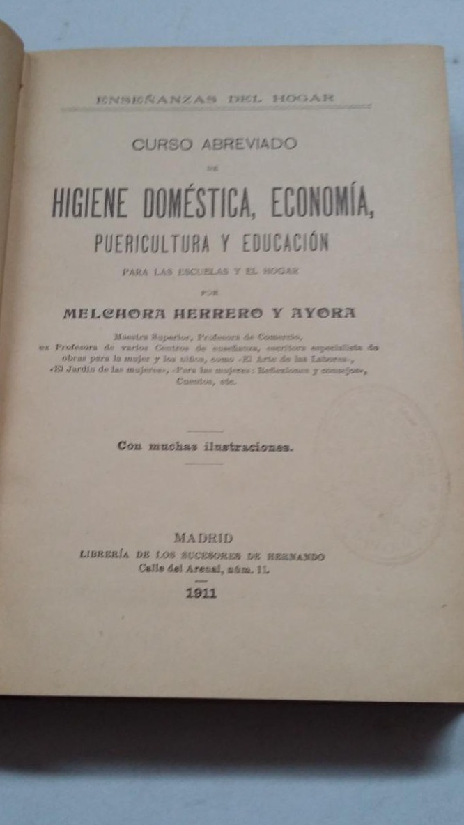 Curso abreviado de higiene doméstica, economía, puericultura y eduación. Melchora Herrero y Ayora. Madrid. 1911. Hernando. 4º menor. 413 pag. Tapa dura. Libro antiguo. Muy bien conservado.