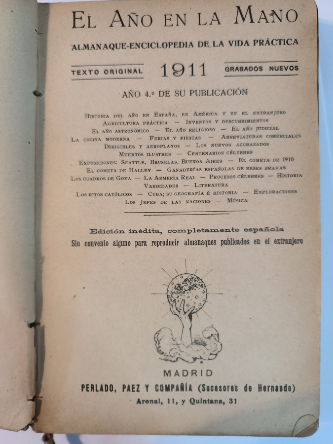 El Año en la Mano - AÑO 1911 - Almanaque enciclopedia DE LA VIDA PRACTICA - TDK207