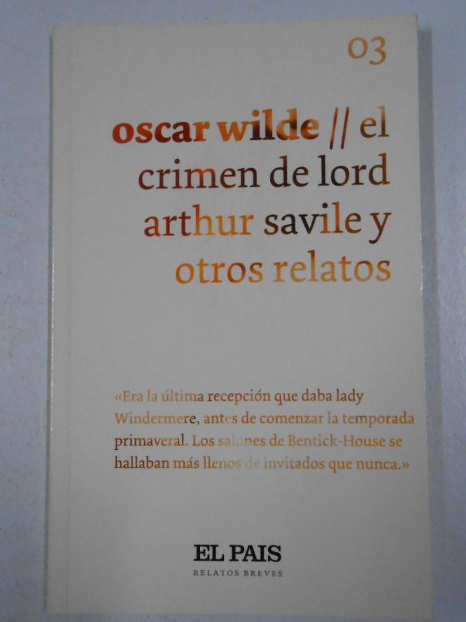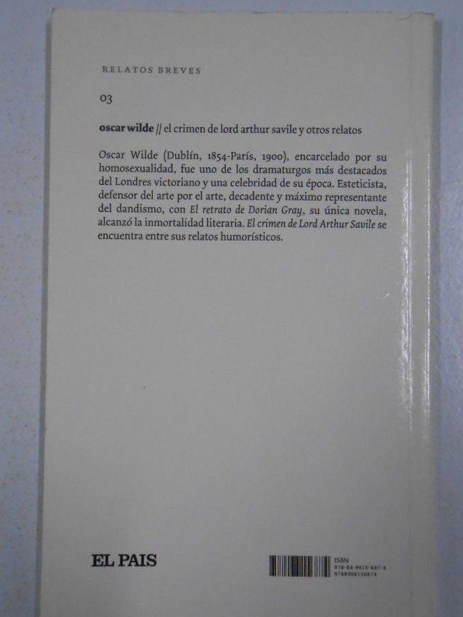 Literatura inglesa. Novela corta. Cuento literario. Siglo XIX. 2007. El País. Madrid. 19 cm. 92 p. Encuadernación en tapa blanda de editorial ilustrada. Colección 'Relatos breves', 03. Wilde, Oscar 1854-1900. Cuentos. Traducción, Julio Gómez de la Serna. Relatos breves