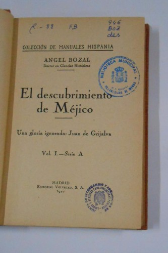 EL DESCUBRIMIENTO DE MEJICO. UNA GLORIA IGNORADA: JUAN DE GRIJALVA - BOZAL, ANGEL. TDK325