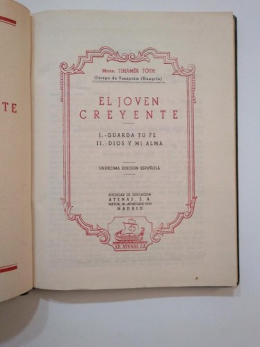 EL JOVEN CREYENTE. - DR. TIHAMÉR TÓTH. SOCIEDAD DE EDUCACION ATENAS. 1950. TDK373