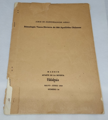ETIMOLOGIA VASCO NAVARRA DE 200 APELLIDOS CHILENOS - ALLENDESALAZAR - TDKC50