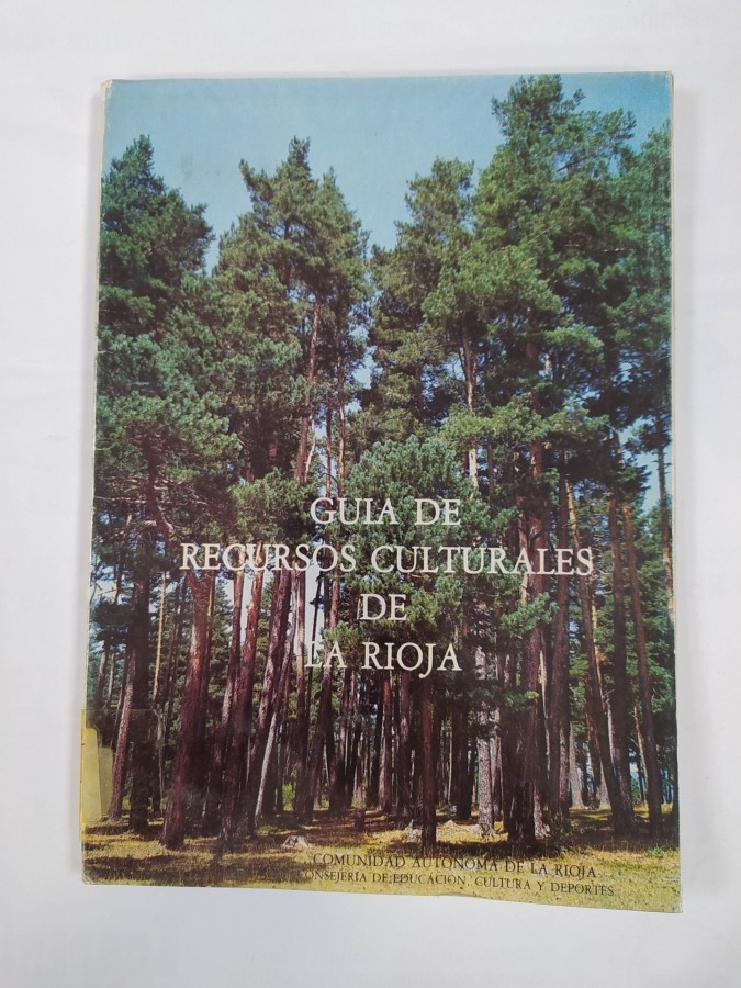 GUÍA DE RECURSOS CULTURALES DE LA RIOJA. de Comunidad Autónoma de La Rioja. Consejería de Educación. Logroño (La Rioja). 1984. Ochoa. 117 págs. 24x17. Etiqueta en lomera, expurgado de biblioteca.