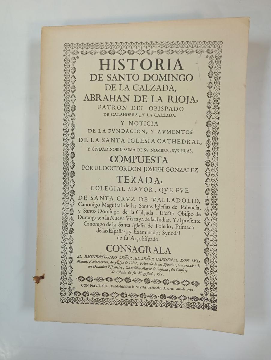 Historia de Santo Domingo de la Calzada, Abrahan de la Rioja, patrón del obispado de Calahorra y la Calzada y noticia de la fundacion y aumentos de la santa Iglesia Cathedral.
