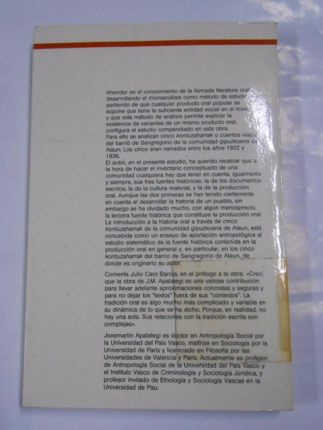 Introducción a la historia oral. Kontuzaharrak (Cuentos viejos) - Apalategi, Joxemartin. TDK68