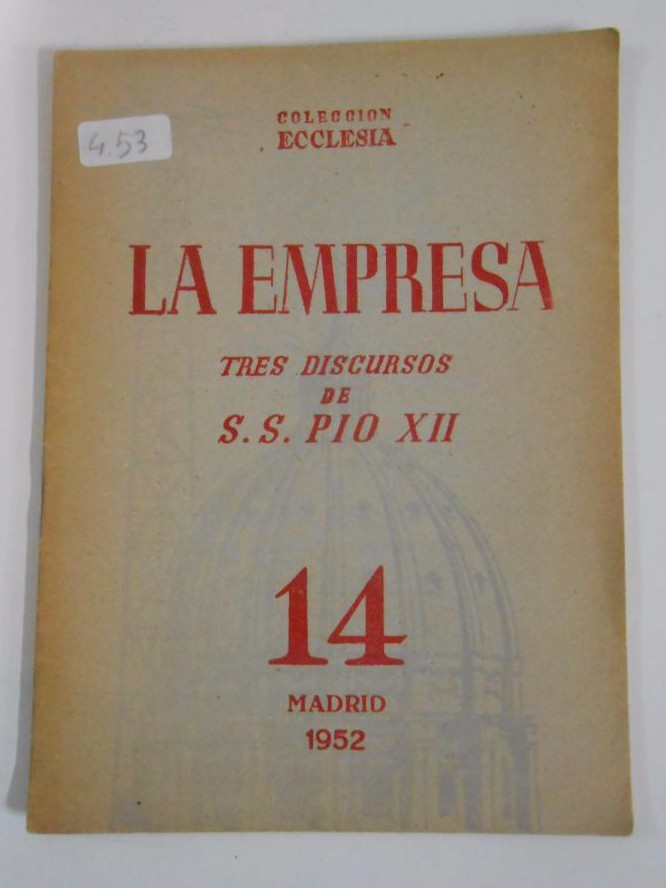 LA EMPRESA. TRES DISCURSOS DE S.S. PIO XII. MADRID 1952. COLECCIÓN ECCLESIA Nº 14. TDKP11