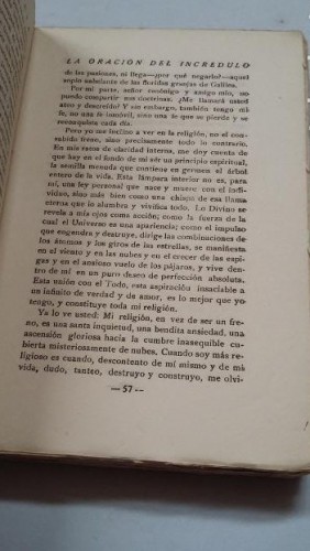 Libro. ZULUETA, Luis de.- La Oración del Incrédulo. Ensayo sobre el problema religioso. Madrid. Años 20. 1ª Edición. 372 pp. Buen estado general. Rústica Editorial ilustrada. 13 x 19,2.