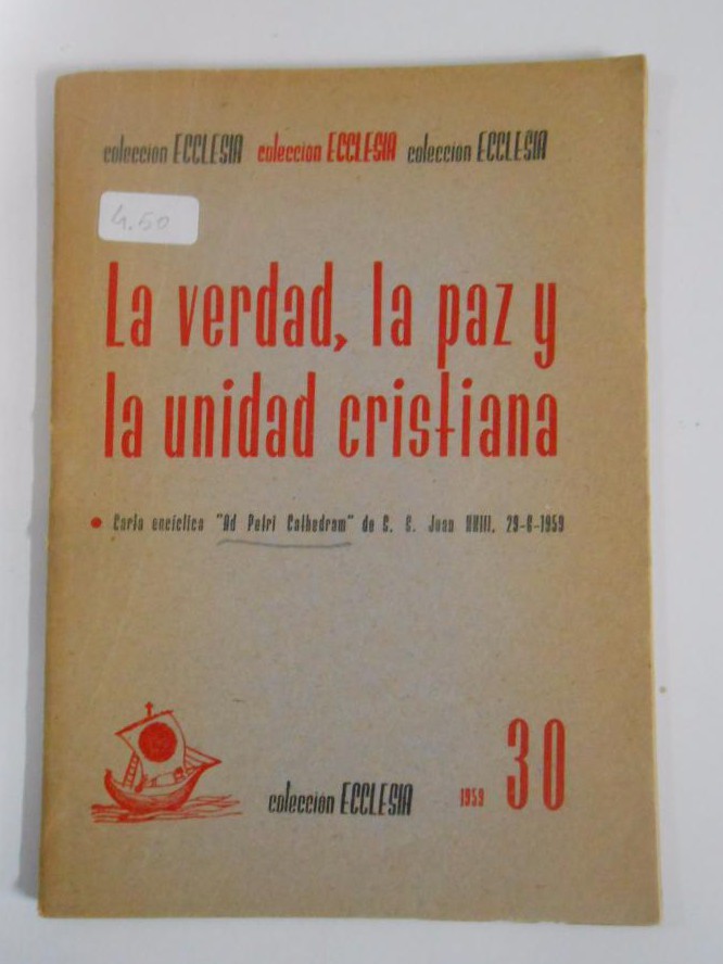 LA VERDAD, LA PAZ, Y LA UNIDAD CRISTIANA. JUAN XXIII. 1959. COLECCION ECCLESIA Nº 30. TDKP11