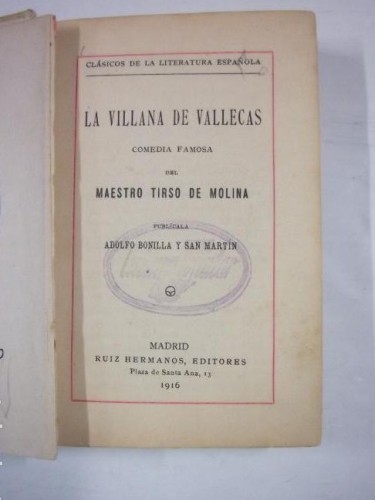 LA VILLANA DE VALLECAS. COMEDIA FAMOSA DE TIRSO DE MLINA. RUÍZ HERMANOS. 1916.- TDK13