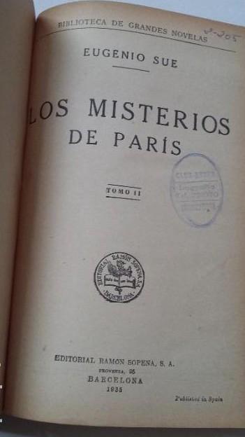 Los Misterios de París, tomo II - Eugenio Sué. EDITORIAL RAMON SOPENA. 1935. TDK436