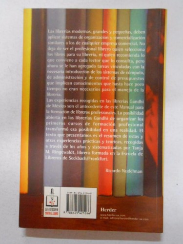 TANJA M. RINGEWALDTBiblioteconomías, librerías, libros, manuales, librerías Gandhi, bibliofilia. Prólogo de Ricardo Nudelman. Edit. Herder, Barcelona, 2000, rústica con solapas, 199 pag., 21,5x14 cm., muy buen estado de conservación.