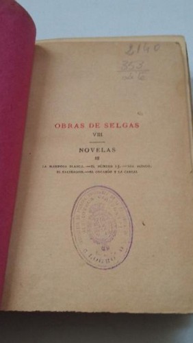 NOVELAS DE DON JOSE SELGAS. III. LA MARIPOSA BLANCA, EL NUMERO 13, DIA ACIAGO... 1887. TDK451