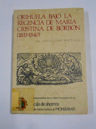 RAMOS VIDAL, Juan Antonio. ORIHUELA BAJO LA REGENCIA DE MARIA CRISTINA DE BORBON (1833-1840). Orihuela: Caja de Ahorros de Ntra. Sra. de Monserrate , 1974. 17x24. Rústica con solapas. Expurgado de biblioteca. Bien conservado.