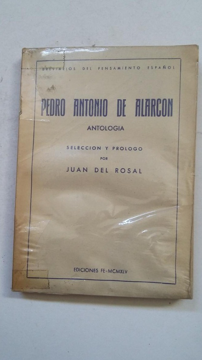 16'5x12, 210p, 3h. Rústica Buen estado. PEDRO ANTONIO DE ALARCÓN. Antología de ROSAL, Juan del (Selección y notas) 1945 Eds. Fe - Breviarios del Pensamiento Español.