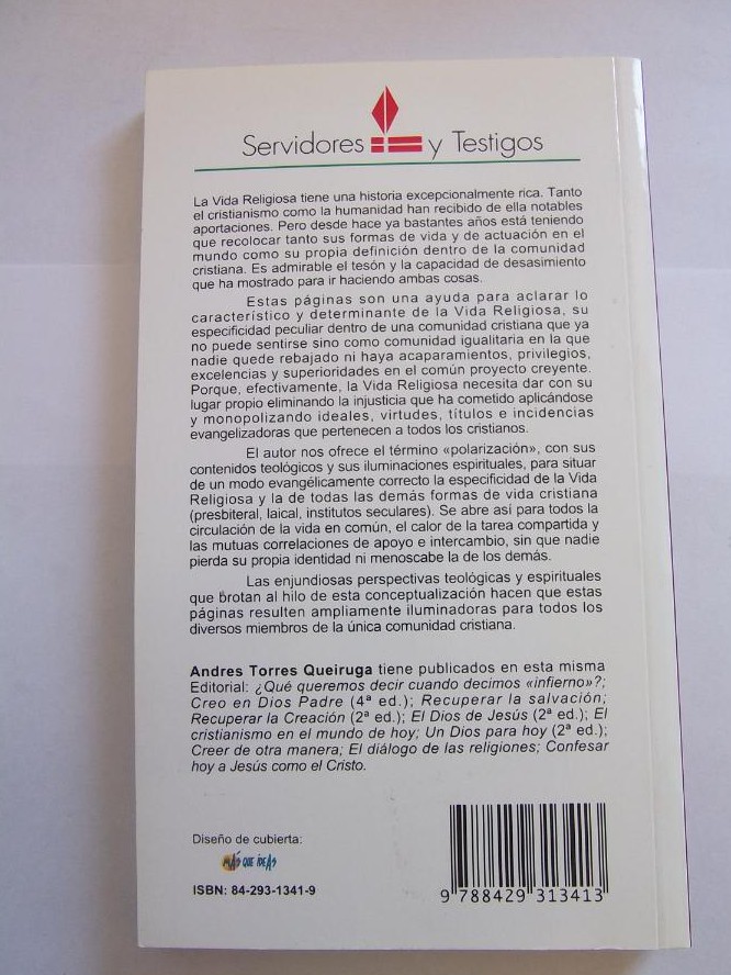 POR EL DIOS DEL MUNDO EN EL MUNDO DE DIOS. SOBRE LA ESENCIA DE LA VIDA RELIGIOSA. Andrés Torres Queiruga. Encuadernación de tapa blanda. Editorial Sal Terrae, 2000. Colección: Servidores y testigos. Religión. 119 páginas. 21,5 x 12. Tapa blanda de editorial ilustrada. Sin subrayados ni anotaciones. Perfecto estado de conservación.Estas páginas son una ayuda para aclarar lo característico y determinante de la Vida religiosa, su especificidad peculiar dentro de una comunidad cristiana que ya no puede sentirse sino como comunidad igualitaria en la que nadie sea más que nadie. Porque, efectivamente, la Vida Religiosa necesita dar con su lugar propio eliminando la injusticia que ha cometido aplicándose y monopolizando ideales, virtudes, títulos e incidencias evangelizadoras que pertenecen a todos los cristianos