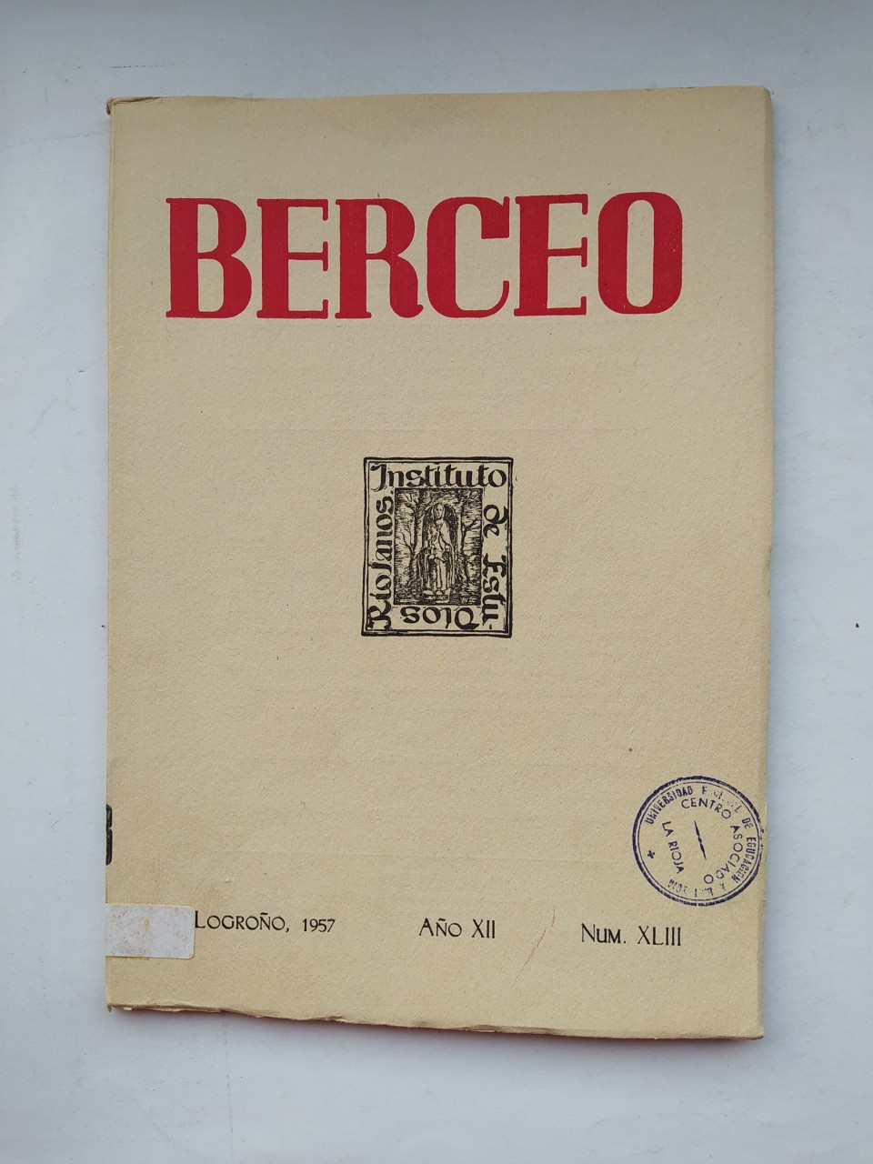 REVISTA BERCEO Nº 43. AÑO XII. INSTITUTO DE ESTUDIOS RIOJANOS. 1957.