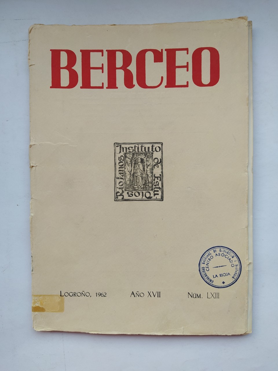 REVISTA BERCEO Nº 63. AÑO XVII. INSTITUTO DE ESTUDIOS RIOJANOS. 1962.