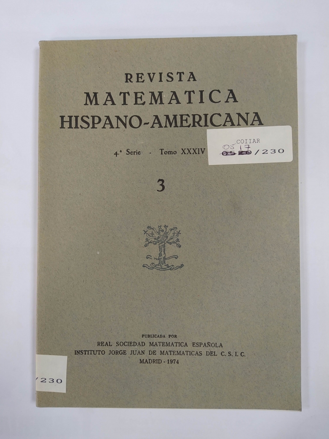 REVISTA MATEMATICA HISPANO AMERICANA. 4ª SERIE. TOMO XXXIV. Nº 3.
