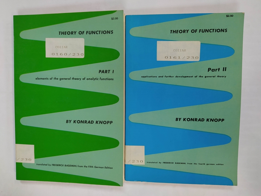 PART ONE: ELEMENTS OF GENERAL THEORY OF ANALYTIC FUNCTIONS. PART TWO: APPLICATIONS AND FURTHER DEVELOPMENT OF THE GENERAL THEORY. Tapa blanda. Translated by Federick Bagemihl. New York Dover Publications. 1975. 146+150 Pag. Etiqueta en lomera, expurgado de biblioteca. Textos en inglés.