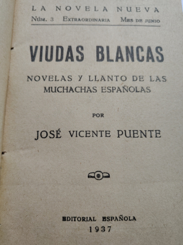 Viudas Blancas. Novelas y llanto de las muchachas españolas. - Puente, José Vicente - novela encuadernada - tdk617